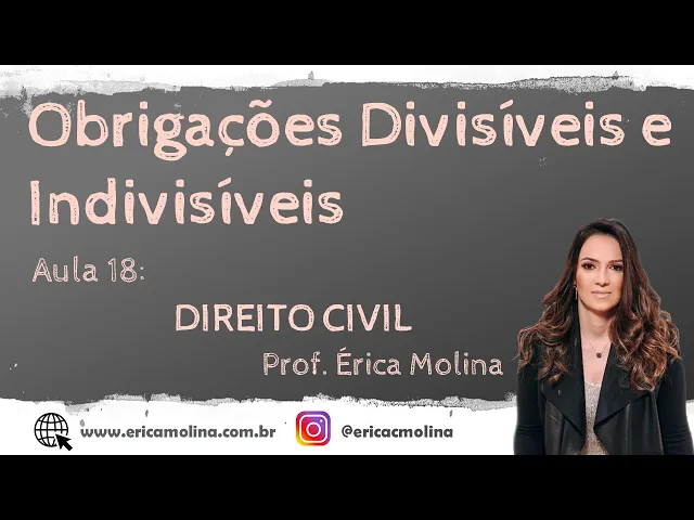 o Olá pessoal tudo bem com vocês Espero muito que sim bem vindo de volta ao estudo do direito das obrigações agora para iniciarmos uma nova etapa com relação então ao estudo das espécies de obrigações Então vale lembrar que além daquelas regras da modalidade dar fazer e não fazer se nós tivermos multiplicidade de elementos se nós tivermos mais de um objeto mais um sujeito então nós estamos diante da possibilidade de aplicação de normas suplementares ou seja normas especiais Aquele caso tão além das regras da modalidade dar fazer e não fazer eu somo as regras especiais que nós estamos estudando agora nas nossas últimas aulas nós falamos então sobre efeitos que uma relação obrigacional só falo quando ali na formação da relação obrigacional a os dois ou mais objetos e aí nós vemos que as obrigações podem ser cumulativas e alternativas ou facultativas agora a partir de agora nós vamos falar então sobre 13 espécies e espécies essas que dependem da quantidade de sujeitos em sabe que toda e qualquer relação obrigacional tem que ter no mínimo um credor no mínimo um devedor nada menos que isso agora pode ser que essas relações obrigacionais na mesma relação obrigacional eu tenho a mais de um credor e eu tenho a mais de um devedor se eu tiver mais de um credor ou mais de um devedor existem três espécies de obrigação as obrigações divisíveis as obrigações indivisíveis e as obrigações solidárias Então vamos lá vamos começar e há o aspecto geral da aplicabilidade dessas obrigações Então olha só agora o que tenha mais não é um objeto tá não é uma prestação o que tenha mais é um sujeito a mais ou vários sujeitos a mais então eu tenho uma mesma relação obrigacional eu tenho aí a presença de outro devedor então nessa mesma relação obrigacional eu tenho juntos dois devedores assumindo a obrigação de entregar aqui este objeto para o credor isso pode acontecer tanto nas obrigações divisíveis e indivisíveis ou solidários a gente vai dizer que tem multiplicidade um espacinhos ou multiplicidade de devedores Além disso eu posso ter também numa mesma relação obrigacional o devedor que assume a obrigação de entregar as duas sacas de milho para dois credores ao mesmo tempo tão na mesma relação obrigacional eu tenho presença de dois credores pessoal é claro que pode ser que numa mesma relação obrigacional eu tenha dois credores dois devedores e dois ou mais objetos eu tenho as cinco credores dois devedores e três objetos então eu posso ter obrigação solidária com obrigação divisível com obrigação alternativa eu posso ter tudo dentro de uma mesma relação obrigacional percebam que a gente está estudando separar e por partes para que justamente para que não Gere aí qualquer problema qualquer dúvida a em relação ao estudo dessa quantidade então de regras estabelecidas pelo código civil bom então nós vamos começar a analisar as obrigações divisíveis e indivisíveis a partir dessa aula e aí para isso é eu preciso lá buscar na minha memória o conceito lá ou a classificação lá no civil parte geral acerca dos bens quando vocês estudaram bens vocês viram que existem bens divisíveis e bens indivisíveis Então o que importa aqui importa aqui se eu tenho mais de um credor ou se eu tenho mais de um devedor como é que eu cubro essa obrigação e eu tenho mais de um credor como é que eu compro na hora de entregar sua obrigação entrego metade para uma metade para o outro entrego tudo para um entrego tudo para o outro pego tudo que os dois juntos como é que funciona essa esse modo de execução da obrigação depende Depende se o bem ou se é obrigação se a prestação é divisível ou se é indivisível bom o bem de visível é aquele bem que pode ser dividido o que pode ser fracionado que pode ser ali repartido em várias partes sem que haja perda da sua utilidade sem que haja desvalorização monetária sem que haja qualquer tipo de prejuízo a coisa em partes ela continua tendo o mesmo valor quando estava reunida a coisa em partes continua tendo a mesma função e atingindo a mesma função quando estava a Anitta então nós estamos diante de um bem que é divisível de uma obrigação que é divisível agora existem alguns bens ou Existem algumas obrigações que são indivisíveis a professora mais tem como parte de um carro no meio tem só que ele continua atendendo a sua função ele continua tendo o mesmo valor ele continua tendo a mesma utilidade não tão bem ou a obrigação indivisível é aquela em que mesmo que saindo possível partilhar ela perde o seu valor ela perde a sua função ela perde a sua utilidade nesse caso então nós estamos diante de um bem indivisível esse é indivisível não tem como dividir e partilhar entregar a parte para cada um de credores ou saindo cada devedor responsável por uma parte bom quais são Então as espécies de a visibilidade quando é que eu sei se é indivisível ou não pessoa então eu tenho a indivisibilidade que é natural que é física quer material Essa indivisibilidade ela decorre da própria natureza do objeto das próprias palavras características do objeto tem um carro naturalmente indivisível o boi naturalmente indivisível a casa naturalmente indivisível Então são coisas que eu sabendo que a sua utilidade é uma que a sua função é uma seu partilhar eu sei que isso perde o seguinte isso faz com que a uma desvalorização então tem aqueles aqueles exemplos clássicos né lá do civil parte geral por exemplo a o diamante o ouro né quando eu partilho quando eu derreto quando eu quebro eles até podem existem quantidade de menores mas por exemplo eles perdem o seu valor um diamante maior ele tem um valor muito maior do que vale os diamantes eu estou tudo isso decorre da própria natureza da própria característica das próprias circunstâncias da coisas agora Existem algumas indivisibilidades que elas são ti