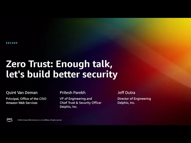 AWS re:Invent 2022 - Zero Trust: Enough talk, let's build better security (SEC405)