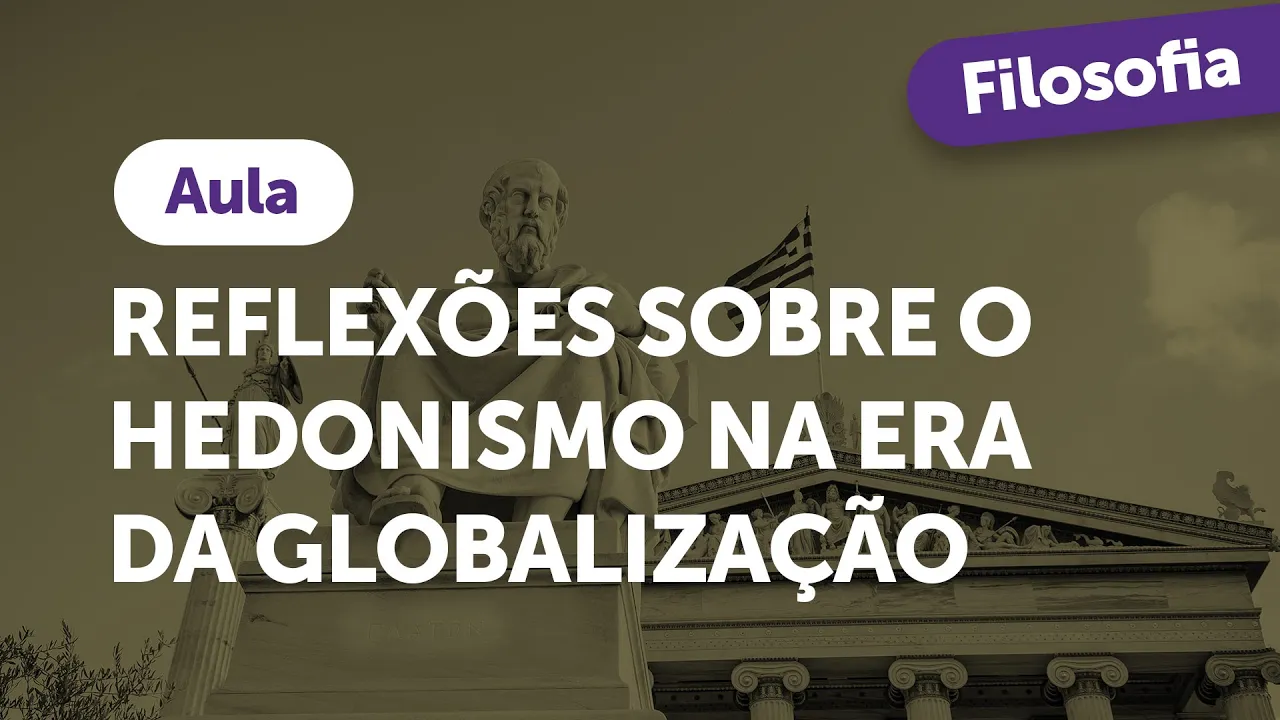 [Música] olá pessoal de superar a prova tudo bem é um prazer estar de volta para continuar nossas discussões acerca de temas da atualidade uma perspectiva filosófica e o tema da nossa aula de hoje é trazer algumas reflexões sobre o hedonismo no contexto da globalização como essa perspectiva voltada para a felicidade eo prazer é tanto um tema filosófico da antiguidade como também é um tema atual nesse contexto da globalização o objetivo da nossa ao tratar desse tema sem dúvida nenhuma será visualizar como que o hedonismo está presente na cultura mundial principalmente em termos em tempos de