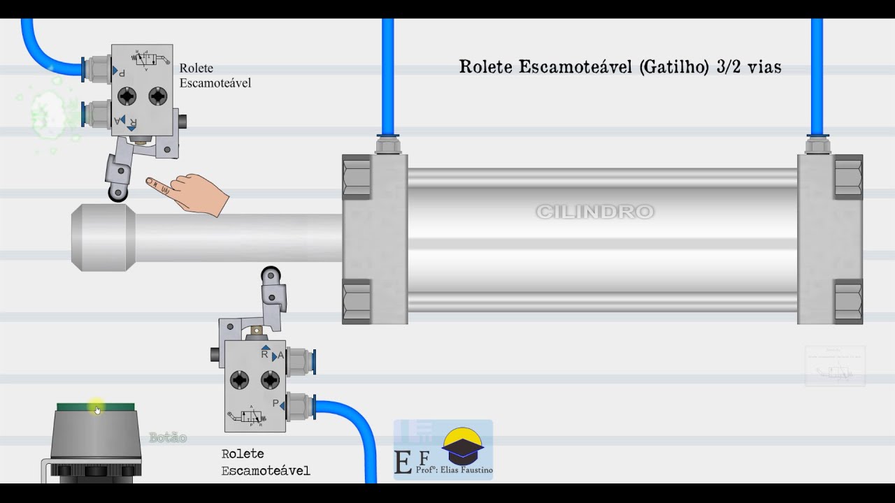 causa ou o avanço do b o be avança logo em seguida ele recua por ele mesmo o a se manterem avançado quando o bê recuo o ato também é co depois que o beco é claro é aí o rico vamos fazer as indicações aqui dos movimentos e dos sensores é o fim de cursos aqui ó a mais ele aciona o fim de curso 1 s 11 que faz com que o bebê avance quando bem avança ele aciona o fim de curso 2 assim causando o seu próprio recurso o bes recua aciona o 2s 2 que