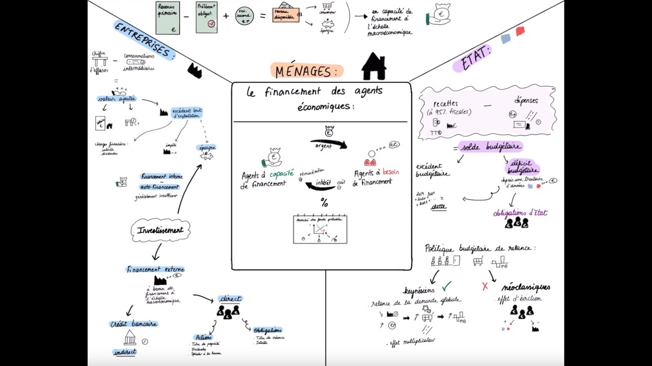 besoins de financement de trois agents les ménages les entreprises et enfin l'État pour cloturer cette vidéo je t'expliquerai les effets des politiques de dépenses publiques mais pourquoi un chapitre sur le financement de l'activité économique en S mais parce que la finance fait tourner le monde bien sûr sans financement pas d'entrepreneuriat pas de politique d'investissement pas de dépenses publiqu comme l'école bon là tout de suite tu te dis peut-être que ce serait génial parce que tu aimerais faire autre chose de ton temps libre que de regarder cette vidéo je te comprends bien mais comprendre les principes