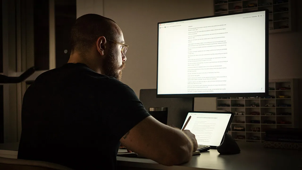das nossas ações são guiadas por hábitos então se você tem hábitos noturnos improdutivos você corre o risco de desperdiçar Praticamente todo o seu tempo livre com atividades que não te ajudam em nada Porém para você reverter isso não é tão complexo assim só não é fácil durante as primeiras semanas então baseado na psicologia do hábito na neurociência e em técnicas de produtividade você pode transformar suas noites Perdidas em momentos de aprendizado de reflexão e de mudança por isso que hoje eu vou te ajudar a abandonar as distrações e a criar uma rotina noturna mais saudável