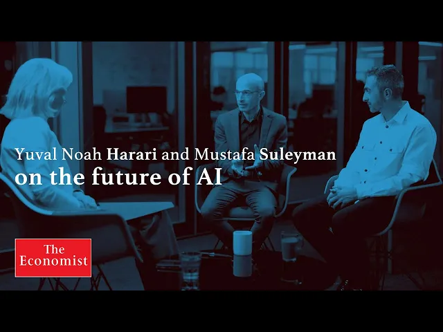 [Music] historian Yuval Noah Harari and entrepreneur Mustafa Suleiman are two of the most important voices in the increasingly contentious debate over AI good to be here joining us thanks for having us the economists got them together to discuss what this technology means for our future from employment and geopolitics to the survival of liberal democracy if the economic system has fundamentally changed will liberal democracy as we know it survive [Music] you well know Harare welcome you are a best-selling author historian I think a global public intellectual if not the global public intellectual your books from sapiens