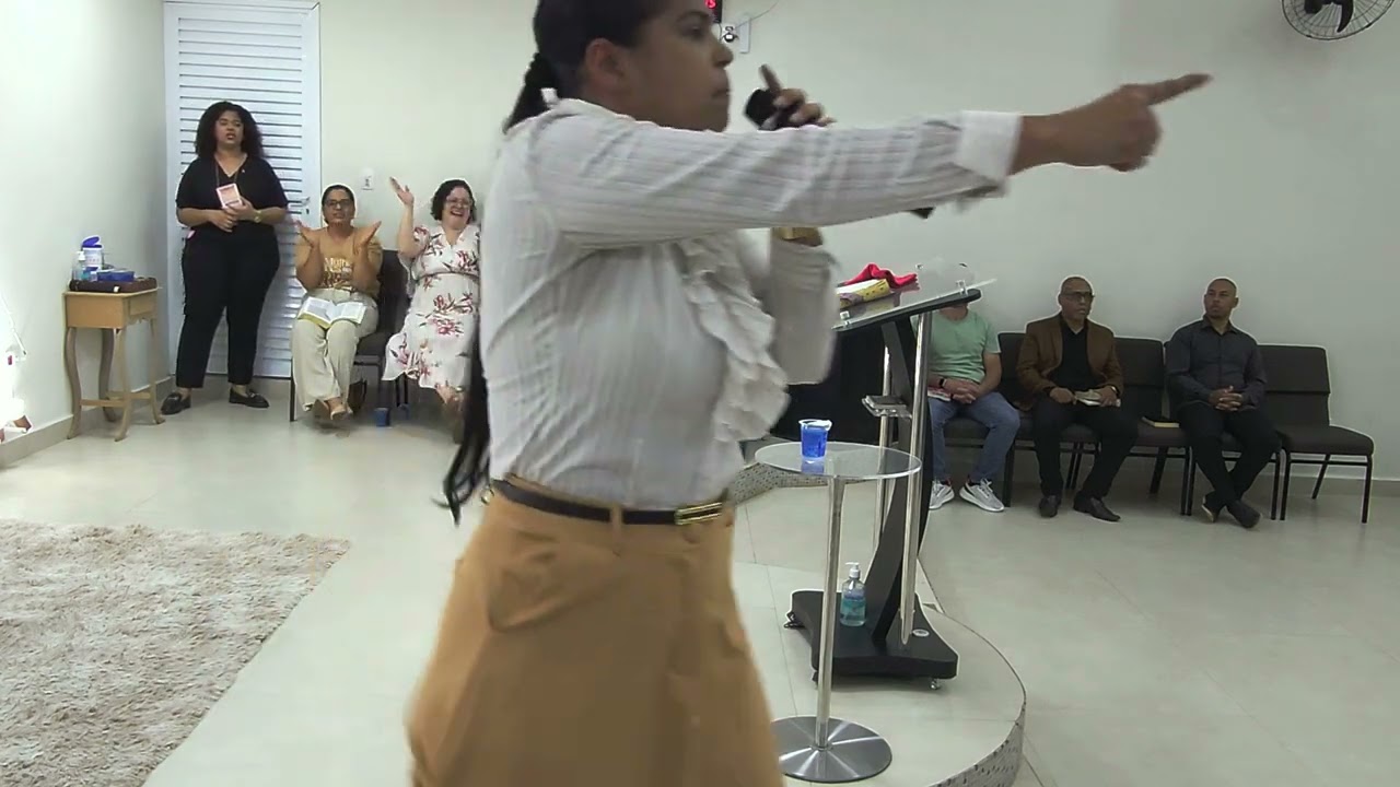 eu sara repreendendo agora toda a inquietação toda administração todo o roubo de pensamento todo o pensamento acelerado toda preocupação com o dia de amanhã eu declaro cativas ao senhorio da tua palavra todas as mentes aqui presentes ea igreja diz se sente adorando quem tiver aqui na frente pode sentar se no chão quiser eu já sentei no chão várias vezes para não atrapalhar já que a cantora não é alta né pra quem tá aqui vené amém querido pastor me pediu para dar uma palavra e quando dou uma palavra eu divido o tempo entre louvor e palavra