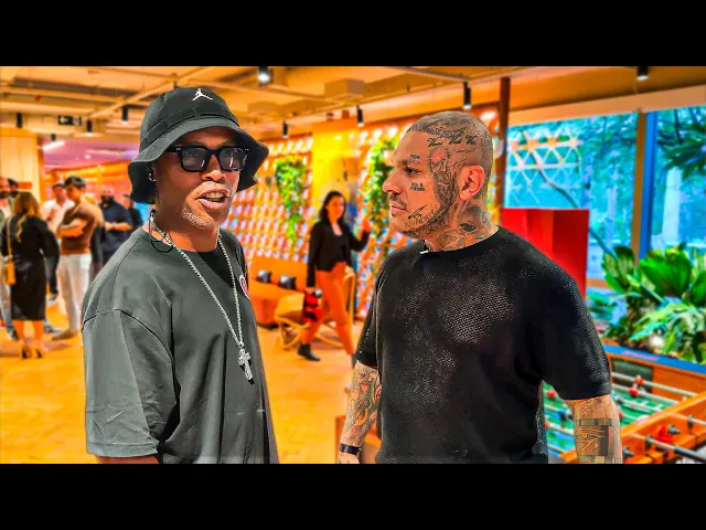 Fala galera, Tguro na área. Estamos aqui na no evento da Netflix. Eu acho que é pra inauguração de um de um projeto do Ronaldinho.