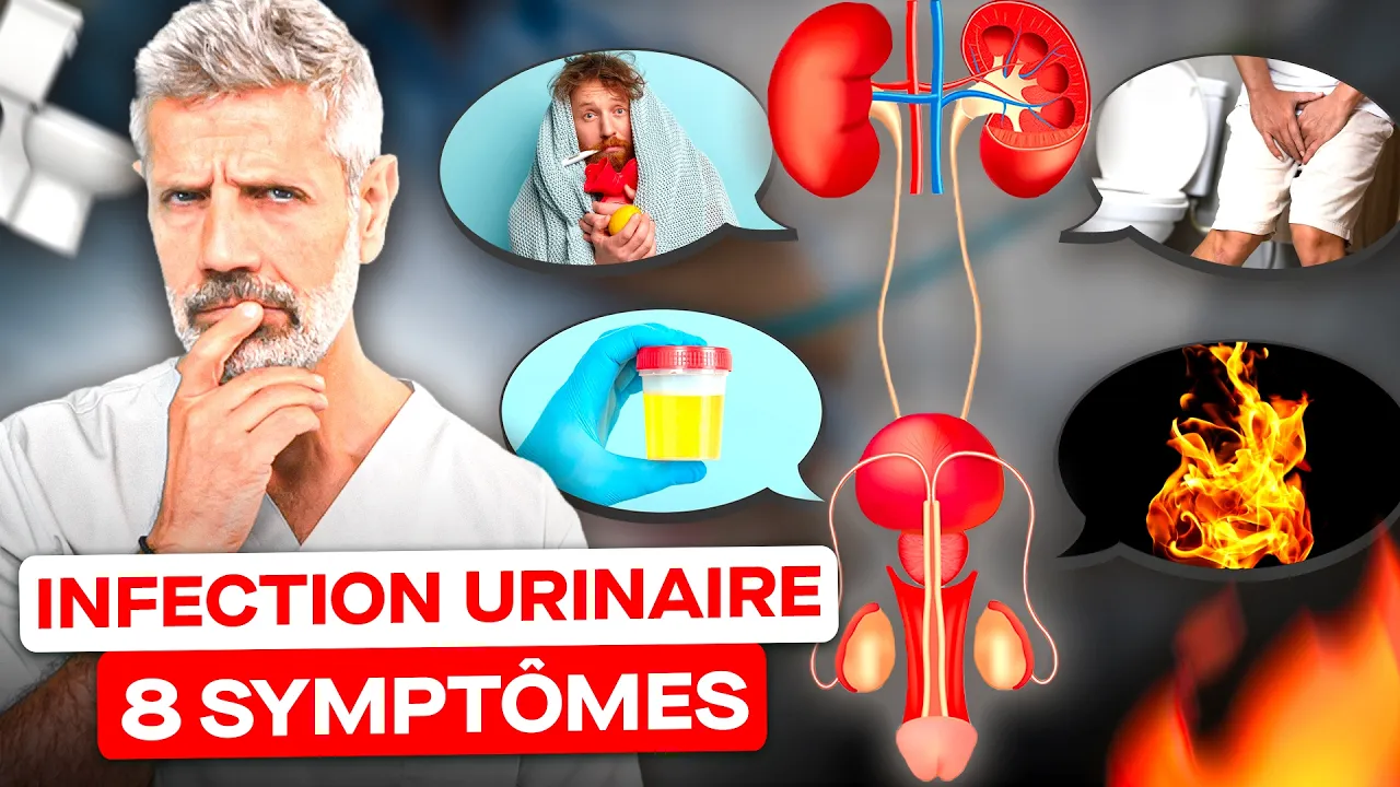 faite là-dessus que ça soit sur l'hypertrophie de la prostate les cancers de prostate vous aurez toutes les informations dessus quels sont les symptômes d'une infection urinaire et on va commencer par les symptômes de la cystite que ça soit chez l'homme ou chez la femme qui est l'infection urinaire la plus fréquente et pour le faire il y a 8 symptômes différents et on va le faire sous forme d'un jeu je vais vous dire à chaque fois le nom médical ensuite je vous dirai ce que ça signifie et vous me direz si vous l'aviez si vous avez