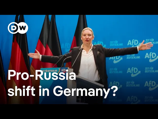 pro-russian anti-American parties are expected to win a quarter of the votes if not more in Germany's upcoming elections the farri right alternative for Germany and the leftwing conservative Zara Varn Alliance want Germany to drop sanctions on Russia and start importing Russian gas again the success of these parties that are skeptical about U the US and NATO could present a major challenge to the transatlantic relationship particularly on security and trade DW's Matthew Moore reports election time in Germany where anti-American sentiment go home and pro Russian views are right 25% of Voters support two parties seeking a