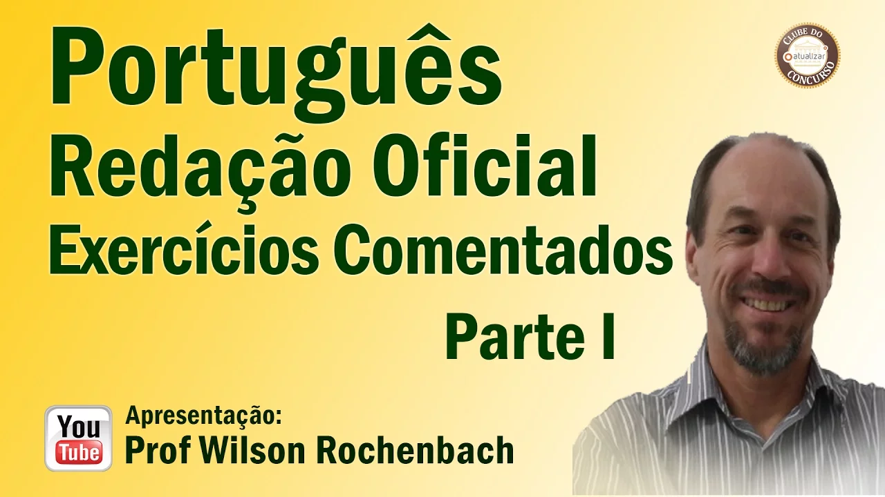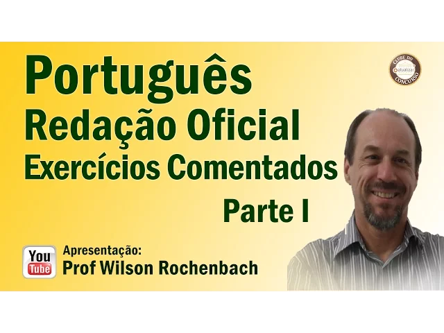 [Música] Olá pessoal professor Wilson de volta agora com a nossa aula de exercícios sobre redação oficial além daquela lista que vocês têm para vocês e exercitarem agora eu tenho exercícios comentados especificamente sobre redação oficial para que vocês possam então estudar entender a explicação e tudo mais tá então participem Se precisarem de ajuda questionem Ô Wilson dá uma ajudinha aí dá uma força certo estou aí à disposição de vocês vamos lá então questão Um diz o seguinte tem Um textinho antes tá e depois diz assim é uma questão CESP Com base no documento apresentado e nos