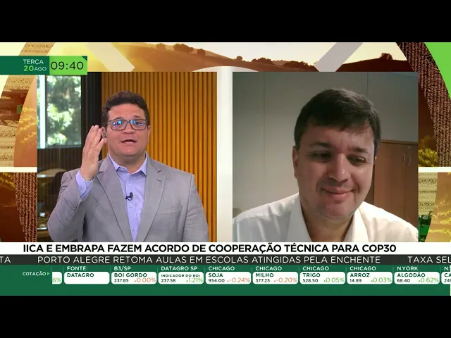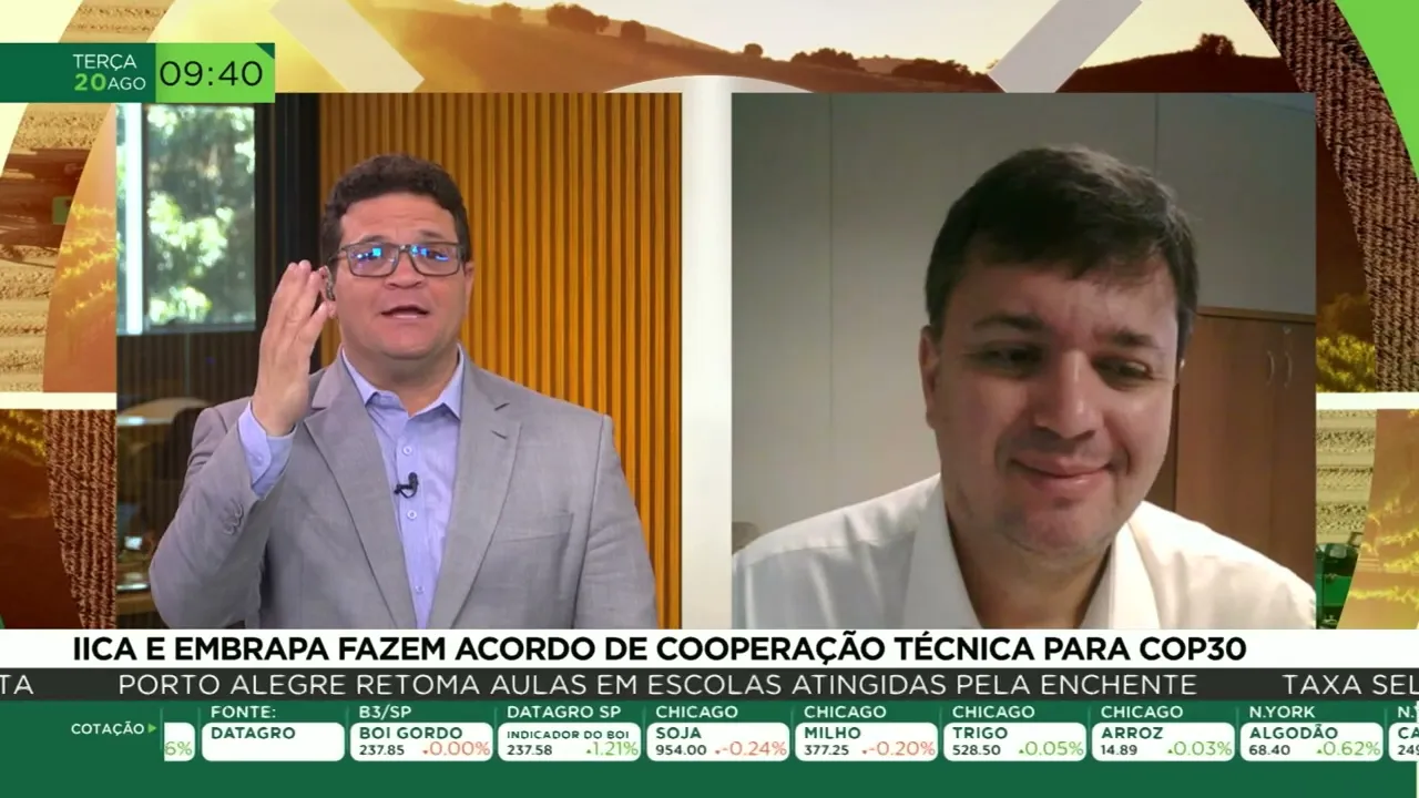 troca de conhecimentos é o objetivo da do Recente acordo assinado entre a Embrapa e o Instituto interamericano de cooperação para agricultura uicaa pesquisa E modernização no campo estão na pauta de encontros que devem servir aí de base para os eventos da cop 30 em novembro de 2025 em Belém no Pará vamos saber mais dessa colaboração com o chefe da assessoria de relações internacionais Marcelo Morandi que representa o ica na Argentina Olá bom dia seja muito bem-vindo Oi bom dia Fábio só uma correção eu sou assessor de relações internacionais aqui da Embrapa ah da Embrapa não
