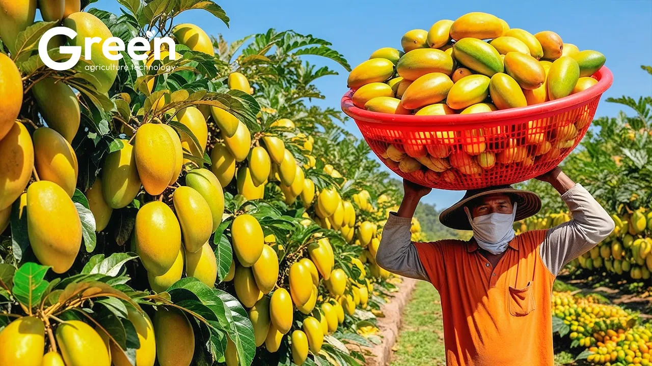 [Music] the mass harvesting and production of mangoes is completely changing the availability of this beloved fruit making it more accessible and abundant than ever here's how they harvest and process millions of mangoes [Music] welcome to Green agriculture technology how they harvest and process millions of mangoes mangoes a Delicious Fruit loved all over the world are usually planted in late spring the ideal time for Farmers to start a new crop [Music] let's discover how this farmer named John cleverly uses steel wire on his farm to protect mango trees helping them stand firm against strong winds and
