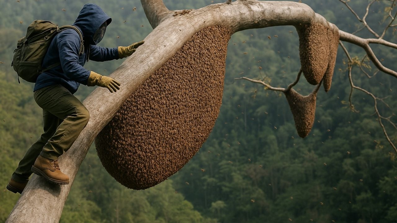 in the peaceful mornings for the low mango trees farmers use their hands to gently pick each fruit without the help of any other tools this Tre traditional method not only ensures that the plant is not damaged but also keeps the mangoes intact and ripe mangos that have not yet reached perfect ripeness remain on the branches waiting for the next day to be picked ensuring the best quality but for tall mango trees a different technique is used long poles with strong Nets attached are used to collect the mangoes from above at the end of each harvest