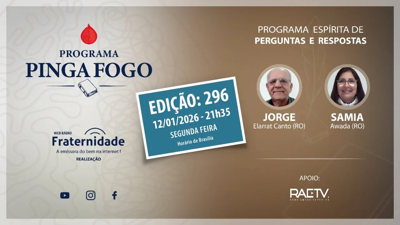 Muito bem, Jorge Smina. A gente vai seguindo então com Pigan Fogo, trazendo A primeira pergunta que é a seguinte, Jorge Sâia, eh, após a leitura do item 4 do capítulo 6 de O Livro dos Espíritos, surgiu a seguinte dúvida sobre a questão de número 257. O per espírito. >> O per espírito. >> Oi, não te ouvi, Jorge. >> Eu acho que acho que 257 não é uma pergunta, é uma dissertação, >> não é? Não. Assim, a dúvida aqui, então, então a dúvida surge a partir dessa Dessa colocação. Olha, ela coloca assim, ó. O perespírito é