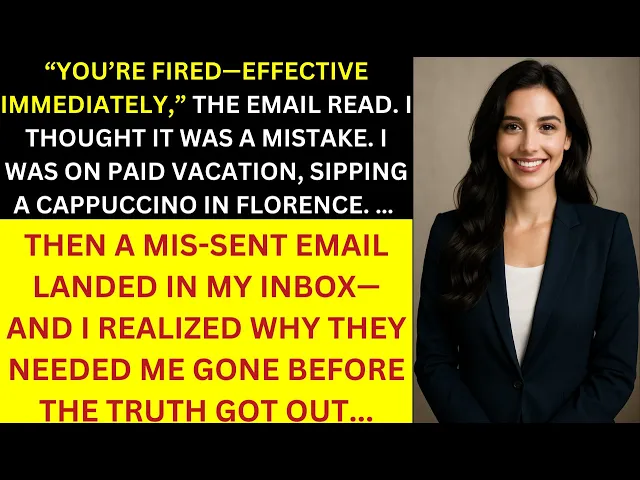 asked Mia, my best friend, watching my face fall. I just got fired, I whispered, the words hanging in the air like a bad dream. by email while I'm on approved vacation.