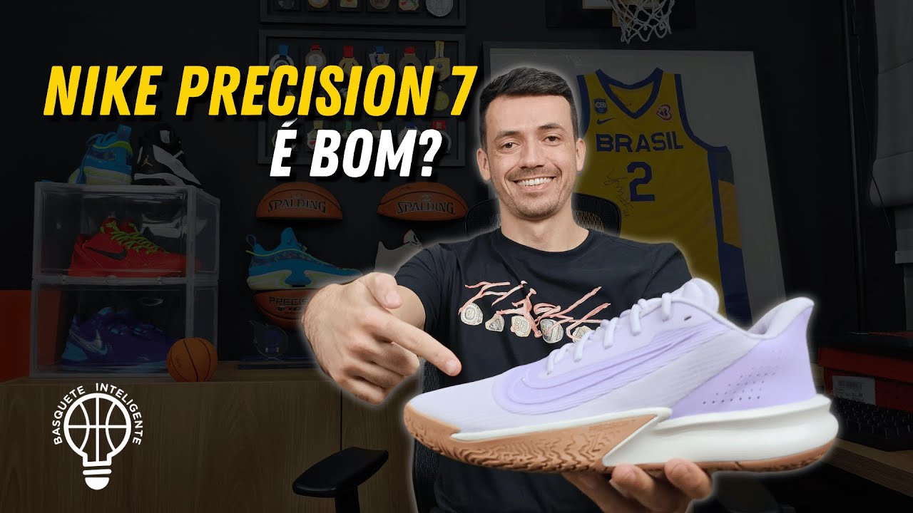 para quem não leu a tamb né logicamente estamos falando dele Precision 7 n Precision 7 Nike Precision 7 antigamente seria Nike Air pris até o três até o TRS Se não me engano até o três depois tiraram o air e ficou só espuma nesse modelinho aqui cara confesso que ficou muito bonito muito bacana né Muito legal não sei se alguém já trouxe esse tênis aqui eu acho que ainda ninguém trouxe nem então Eh primeira mão e aqui no Brasil né Acho que ninguém ainda mostrou o tênis então a gente tá tentando trazer aqui em primeira