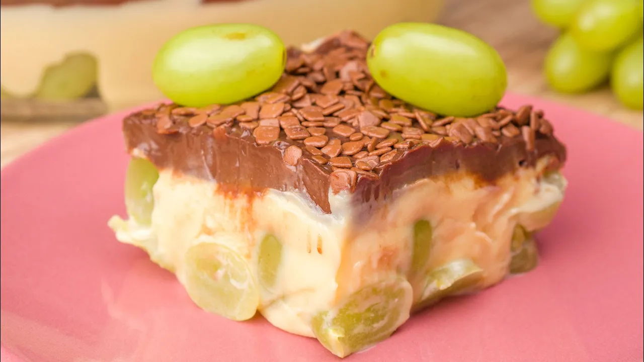 quem quer fazer uma sobremesa super fácil e rápida vem comigo tem três por um bombom de uva na travessa Oi pessoal receitinha doce por aqui em ou você excelente combinada com creme de leite em pó pode ser mesquinho mais uma cobertura maravilhosa de chocolate gente combinação perfeita isso aqui realmente é um bombom na travessa vamos lá para os ingredientes primeiro iniciaremos com esta parte de baixo maravilhosa para ela vamos utilizar 350 g de uvas sem sementes uma lata de leite condensado uma caixinha de creme de leite é uma xícara de leite em pó e meia