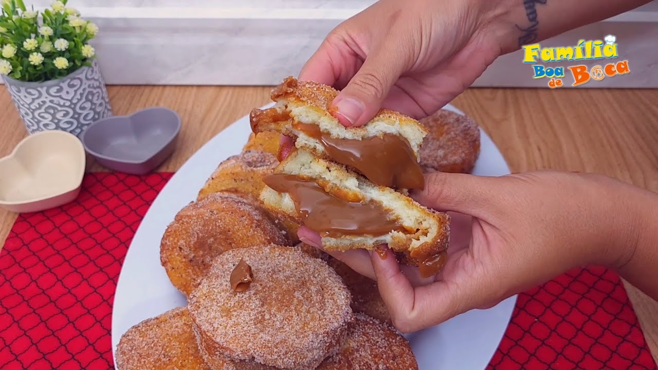 fácil e fazer hoje mesmo e essa é a rabanada que foi frita já com o recheio de leite em pó [Música] gente que tarefa difícil escolher um sabor melhor entre os três Afinal só tem recheio bom rabanada quentinha com casquinha crocante por fora e molhadinha por dentro é tudo de bom mas como eu sou absoluta de doce de leite a minha escolha é essa o rendimento depende do tanto de pão que você usar a quantidade de calda de leite e ovos é suficiente para banhar 12 pedaços grandes como esses que eu fiz [Música] e se