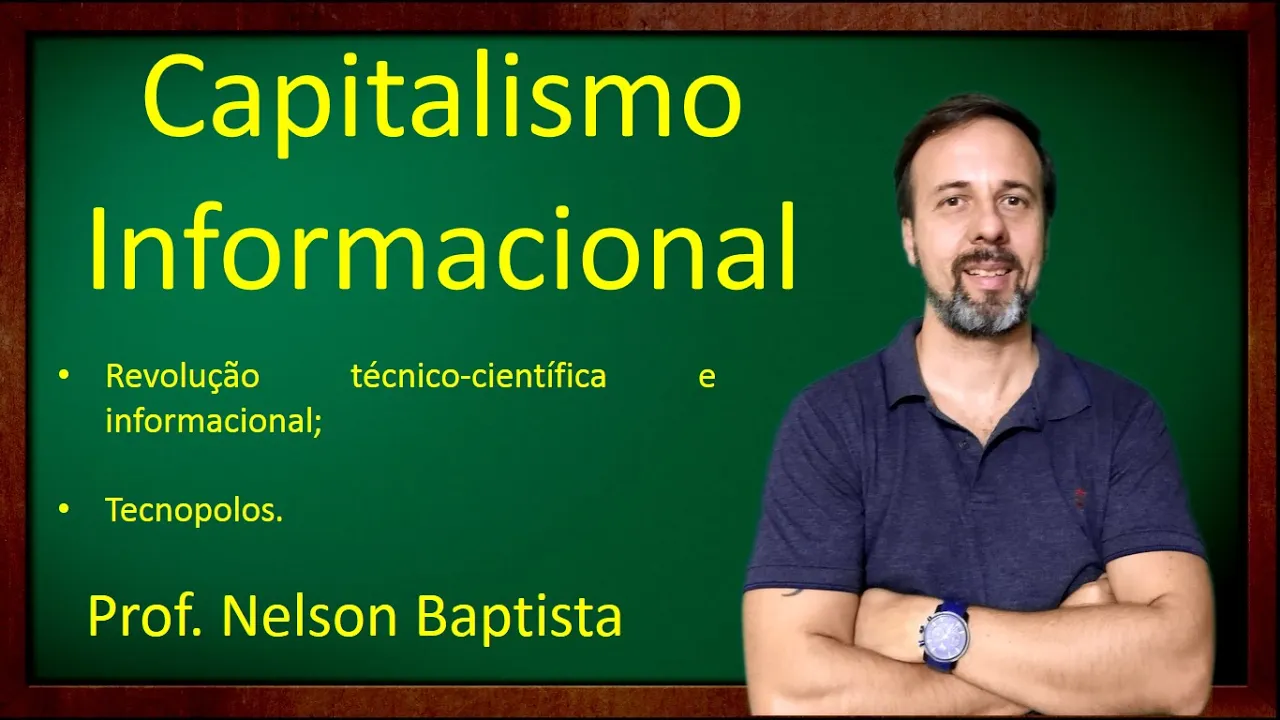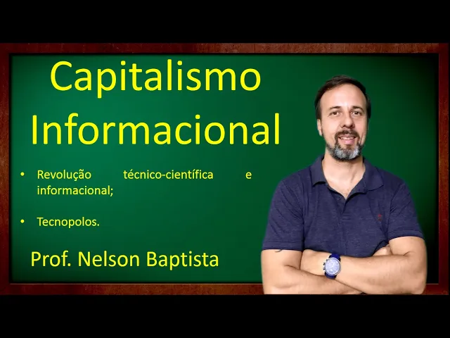 e fala aí pessoal tudo bem Aqui é o professor Nelson Batista com mais uma aula de geografia e na aula de hoje pessoal nós iremos falar sobre o capitalismo informacional que é a fase atual do sistema capitalista agora se você não acompanhou os vídeos anteriores Nós estamos uma série sobre capitalismo nós estamos o vídeo capitalismo aspectos gerais capitalismo comercial capitalismo industrial e capitalismo financeiro Então para você entender essa aula de hoje tem que acompanhar né as fases anteriores do capitalismo bacana Vamo lá então tão capitalismo informacional período pós-segunda Guerra Mundial até os dias de hoje