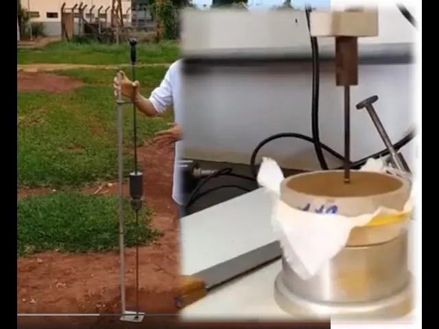onde a análise feita sobre amostras coletadas em campo e nós temos equipamentos de campo do equipamento de Campo nós podemos classificá-los conforme seu princípio de funcionamento nós temos penetrômetros questão de penetrômetros estáticos e penetrômetro dinâmico como esse daqui penetrômetro de táticos quando o acionamento é manual eles possuem uma desvantagem que é o e do operador sobre resultado da análise já o como esse aqui eles têm essas tem a vantagem de ser equipamentos são robustos diz minimizam o efeito do operador no resultado disso ele é dotado de um de uma filmar essa acha que ela possui