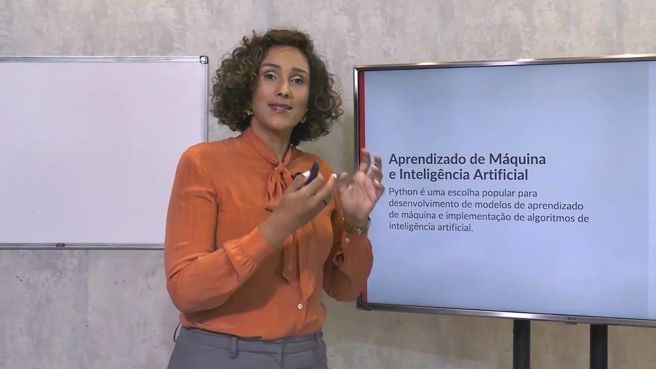 Inteligência Artificial e machine learning que é a linguagem de máquina o Python trabalha muito bem que é exatamente o que a gente faz quando trabalhamos com ciência de dados eu preciso que os meus dados históricos me contem O que vai acontecer no futuro então para isso eu crio modelos de aprendizado de máquina eu digo para ele o que aconteceu e o o que que vai acontecer no futuro um exemplo Imagine que a sua empresa vende alguns produtos e ela tem vendido durante um tempo na internet eu preciso saber se essas pessoas que estão entrando no