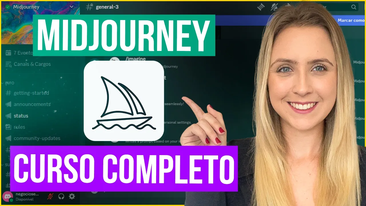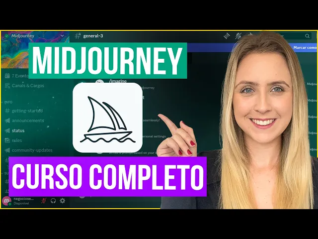 o mid Journey pode criar qualquer coisa que você imaginar mesmo sendo algo muito absurdo como por exemplo um elefante tocando guitarra no fundo do oceano ou um robô comendo sushi no espaço Esse vídeo é um curso completo sobre o mid Journey em que você vai aprender do iniciante ao avançado e vamos falar sobre prompts parâmetros e muito mais você vai aprender a utilizar o mid Journey com segredos e dicas que não te passam o meu nome é Tainara e seja muito bem-vindo ao canal Negócios em mente aqui você aprende tudo que precisa sobre marketing negócios e inteligência artificial para fazer parte do 1% para facilitar o vídeo está dividido por tópicos E caso você queira ver algum deles em específico basta passar o mouse aqui onde fica a barrinha de tempo do vídeo todos os links e mapas mentais utilizados nessa aula eu vou disponibilizar de graça e o link para você acessar está aqui na descrição bom o m Journey é uma ia generativa que cria imagens a partir de descrições em texto Então eu falo o que eu quero ver e o my Journey vai gerar essa imagem no dia em que eu estou gravando esse vídeo não tenho plano grátis e o plano básico começa a partir de $0 em todos os planos Você tem o direito de uso dessa imagem então todos eles aqui já tem em termos comerciais Gerais mas só em planos mais caros você pode gerar imagens sem que outras pessoas vejam os seus trabalhos O que é muito útil se por exemplo você for vender produtos e que a estampa você gerou no m Journey agora caso o seu plano acabe você pode comprar mais horas adicionais sem precisar mudar de plano então é é bem importante que antes de você assinar você veja aqui os planos disponíveis para selecionar Qual que é o melhor pro seu caso bom e o m Journey funciona no discord que é uma plataforma de mensagens onde você pode criar o seu próprio servidor como se fossem grupos de conversa mas fica tranquilo porque é uma ia bem fácil e prática de utilizar como eu vou te mostrar aqui na prática então para começar você vai acessar o site me journey. com conforme está aparecendo aqui em cima caso você já tenha uma conta é só clicar aqui nesse botão amarelo e caso você ainda não tenha é só clicar em join the Beta E aí ele já vai seguir aqui vai passar as instruções para que você crie então a sua conta vai abrir primeiro esta página aqui então não se assuste é só você clicar em aceitar convite e ir seguindo as instruções é bem prático e simples como são nas outras ias também ok então agora eu vou fazer login e já volto depois que você criar a sua conta você pode acessar este site aqui me journey. com bara que vai abrir esta página aqui que tem algumas coisinhas bem interessantes então primeiro nesse símbolo de bússola você já vai encontrar aqui todas algumas imagens geradas por outros usuários então tem bastante imagem legal também e você pode inclusive pesquisar por exemplo Ah eu quero ver imagens que que envolvam peixe e aí que ele vai te mostrar todas as imagens que foram geradas com utilizando essa palavra no prompt ou por exemplo Castelo então aqui é bem legal porque você também consegue buscar por imagens já geradas aqui no segundo botão você vai encontrar todas as imagens que você já gerou nesse botãozinho de like é para você dar um feedback sobre qual imagem ficou melhor e isso ajuda também a desenvolver ainda mais o me Journey nesse simbolozinho de luz você pode fornecer um feedback e agora descendo aqui nós temos o suporte e também a documentação que é algo bem legal clicando aqui em quick start guide você vai ter um tutorial do me Journey sobre os mais variados pontos então aqui é bem interessante e eu vou te mostrar algumas páginas daqui no decorrer desse vídeo e já aproveita para curtir esse vídeo vídeo e se inscreva aqui no canal porque esse vídeo deu bastante trabalho mas eu tenho certeza que ele vai te ajudar continuando aqui aqui nesse simbolozinho de do Sininho você consegue ver os últimos as últimas atualizações do midar então isso aqui é bem interessante para você ver tudo que tem de novo agora já nesse simbolozinho de Globo vai abrir direto o m Journey no discord que é onde a gente vai gerar as imagens e aí Aqui você pode clicar só em aceitar convite nesse simbolozinho de lua Nós deixamos o tema Claro ou escuro e clicando aqui no simbolozinho do perfil você consegue ver mais detalhes sobre o seu plano imagens que você fez upload ou sair bom então agora vamos direto pro discord pra gente gerar imagens e eu te mostrar tudo que a gente pode fazer aqui dentro Antes Só de eu te mostrar dentro do do discord eu quero te mostrar esse site aqui que é o mid library.