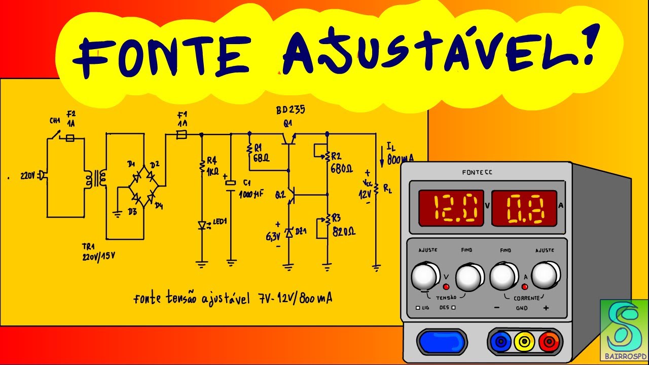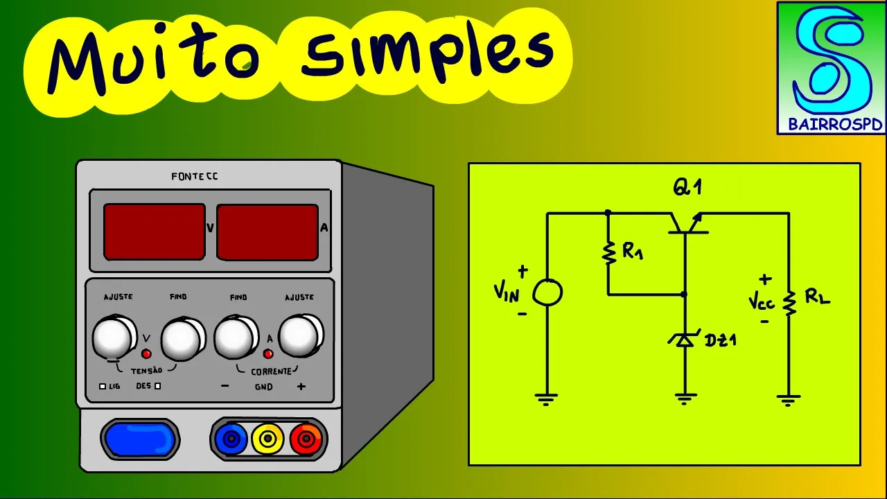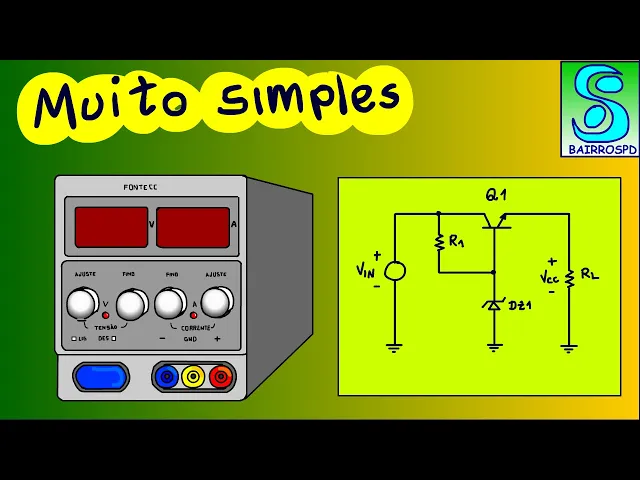 Olá eu sou o professor bairros e no tutorial de hoje nós vamos ver fonte estabilizada linear com transistor mais simples do mundo você verá neste tutorial análise da fonte estabilizada a linear com transistor mais simples do mundo essa análise irá mostrar os conceitos básicos para esse tipo de circuito serão fundamentais para você entender o funcionamento das outras configurações usando transistores amplificadores operacionais ou circuitos integrados vamos lá esse é o circuito não podia ser mais simples não é mesmo esse circuito a ponte vem é a fonte de tensão de entrada representa a saída de um dos