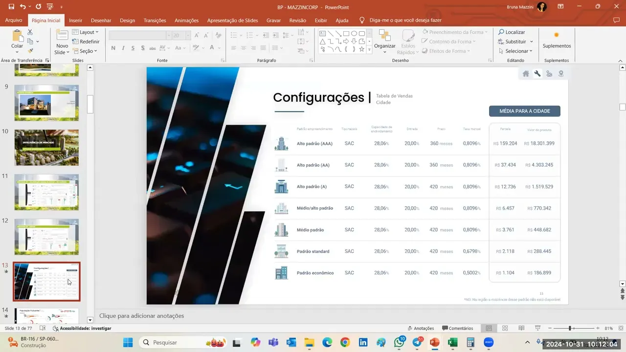 Obrigado Bruna agora Ezequiel compartilha tua viabilidade aí para mim por favor vai lá pro Qual que é o valor do roda rola um pouquinho para outro lado ela tá muito para cá vai para lá a planilha é qual o valor não é porque ela tá aí pronto o terreno é permuta 9.4 vai lá pro Mix produtos oito Vai para baixo rola Para baixo o terreno tá 4800 tá você já fechou preço que a gente a gente trocou em apartamentos assim né fez o estudo como permuta em apartamentos a itaria em 4866 com valor que eu