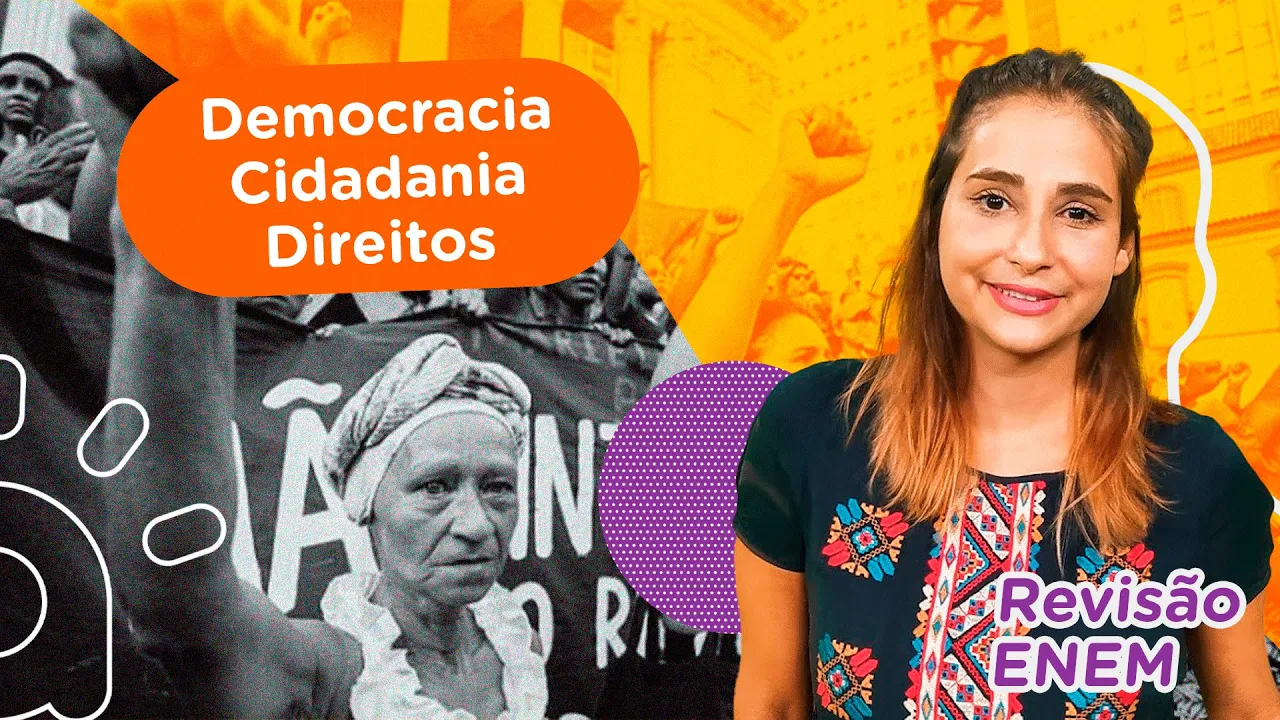 pensar na questão política Então essas duas questões são algumas das várias questões que o Brasil possui como problema e que pode cair nas questões a democracia está relacionada com a ideia de direitos tá a democracia Liberal essa democracia moderna e a gente tem alguns documentos apresentando essa ideia de direito que nos traz a ideia de que somos todos iguais em distribuição de poder Então a gente vai ver alguns documentos reivindicando esses direitos iguais de novo mesmo ela sendo moderna esses direitos não estarão representados para todos né a gente sabe que a ver alguns que não