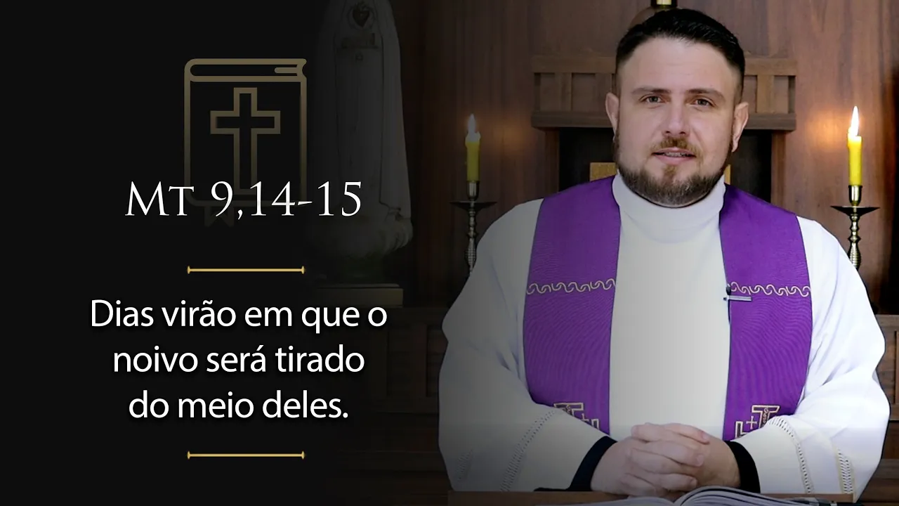 Lucas hoje a gente já tá em Mateus por causa da temática quaresmal sobretudo desse início oração esmola jejum e conversão hoje aqui então o tema é o jejum mas junto com o falar de jejum e resolver o BO do jejum Jesus já apresenta a ele mesmo como noivo ou seja como alguém perdido de amor por nós eu sei que muita gente que me escuta é casado não sei como tá seu casado amo mas puxa aí lembra quando você ficou noivo noiva Ah que alegria Ah quanto sonho quanto esperança não é assim naquele tempo que o