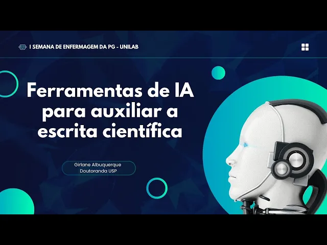 É real e sem conflito de interesse de fato a pessoa que investe na no seu na no seu apoio nas consultorias ela consegue esse sucesso acadêmico então muito obrigada pelo aente Muito obrigado jlan então hoje a nossa palestra é sobre ferramentas de a para auxiliar na escrita científica e gerlan o pco é seu fique à vontade Primeiramente Bom dia a todos eu quero começar expressando a minha gratidão pelo convite pela indicação do meu nome Para participar né da semana de enfermagem Da pós-graduação Da Da Unilab como a professora já colocou eu sou egressa do mestrado