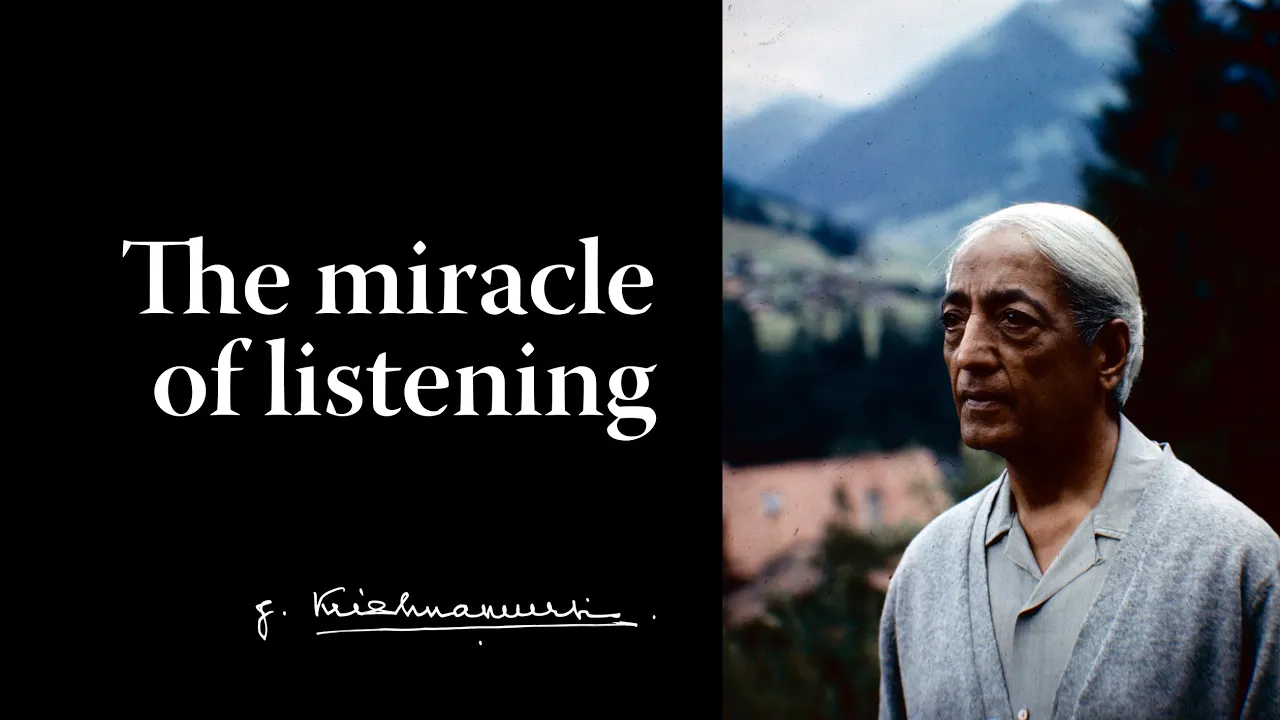 Unless you have space then only in that space sound can take place. So the art of listening, if one may point out most respectfully, is not only hearing with the ear but also listening to the sound of the word. The word has a sound and to listen to that sound there must be space.
