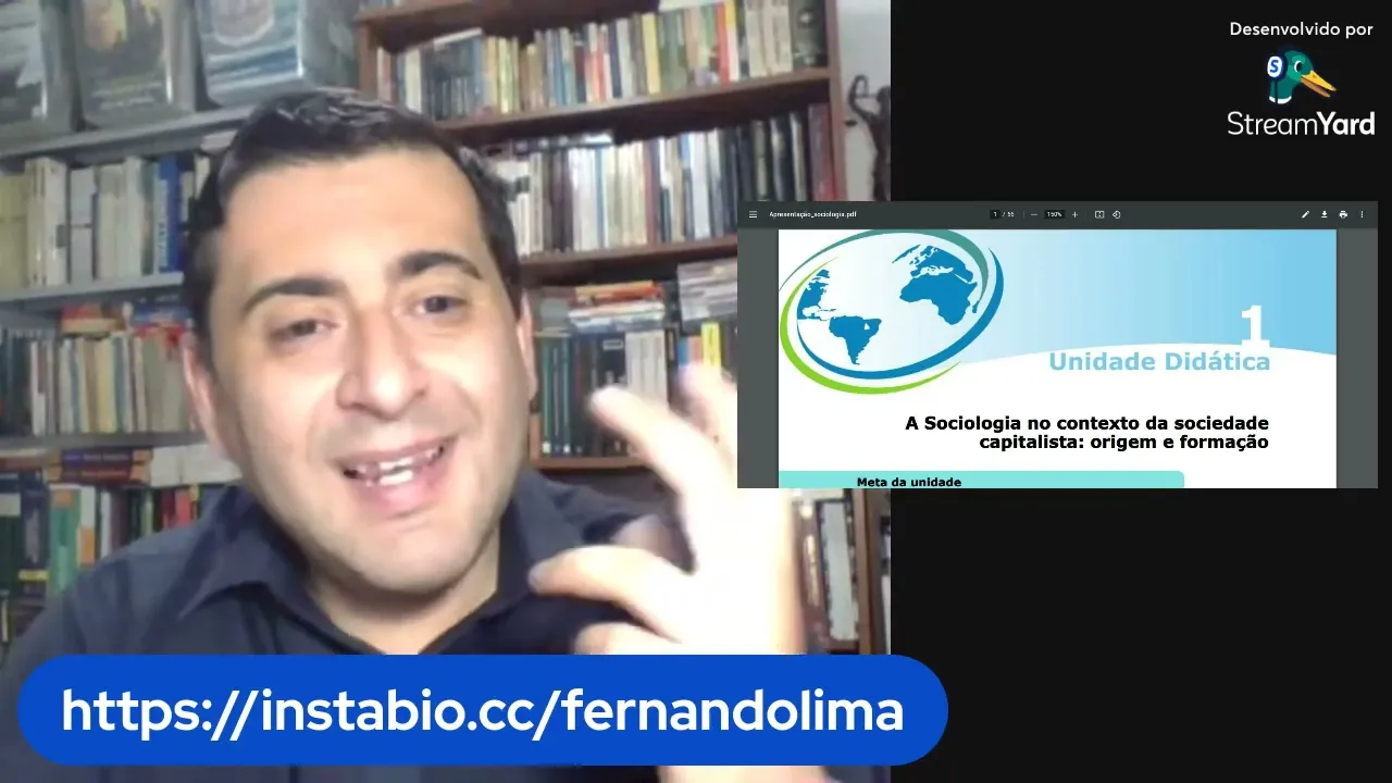 E lá sejam bem-vindos Eu sou Professor Fernando Fabiano Gonçalves de Lima estarei com vocês nas próximas duas horas e com essa disciplina de sociologia da educação que mais exatamente a disciplina fundamentos sociológicos da educação nessa o nome oficial da disciplina sociologia da educação qualquer tipo de Pesquisa que você for fazer pode fazer por sociologia educação que você vai encontrar vocês estão me vendo aí a tela dividida vocês estão a tela de do meio eu me vendo ainda julgamentos com apresentação a pouco eu vou ficar pequenininho e apresentação vai ficar no no na tela principal mas