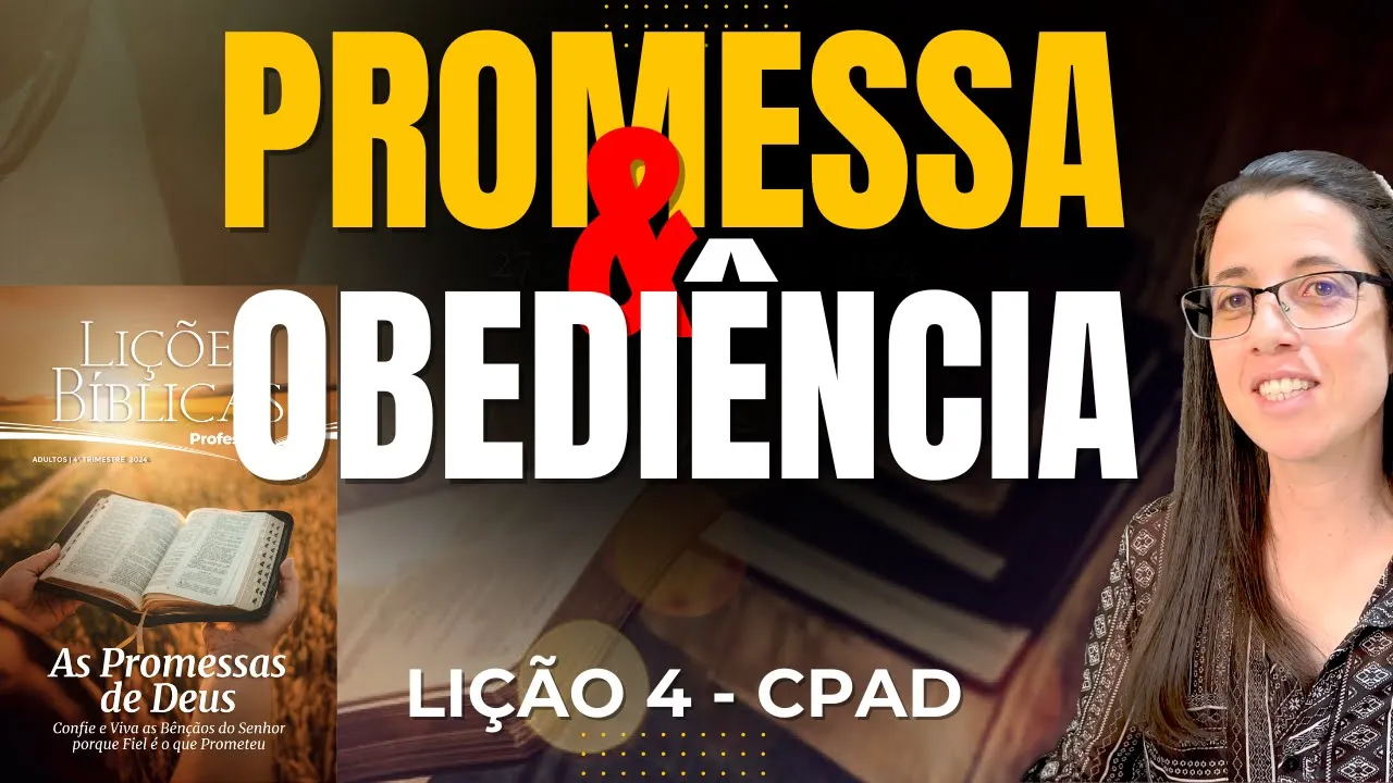 eu quero saudar a você neste dia com a paz do Senhor Jesus nós estamos juntos aqui para estudarmos a lição de número quatro promessa e obediência uma lição preciosa para nós quando nós seguimos esta série de lições que vão falar das promessas de Deus e temos aprendido já bastante neste trimestre vamos seguir assim graças a Deus nós neste canal aqui vos fala a professora Manoela Barros trabalhamos a lição a partir de um roteiro que eu faço a cada semana baseado na própria lição então o comentarista da lição faz a divisão e o esclarecimento de cada