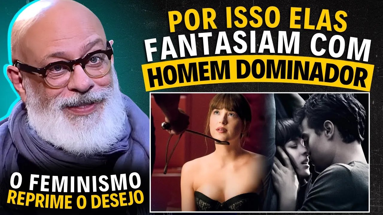 Ah, a, o discurso feminista, ele é monotemático, ele é estreito, ele quer tornar o desejo correto e aí ele cria uma barreira e reprime o que muitas mulheres querem, que é atitude, como a gente falou aqui. [música] Também tem uma outra palavra que é pegada, certo? E esse homem da nova masculinidade, ele não tem nem atitude, nem pegada.