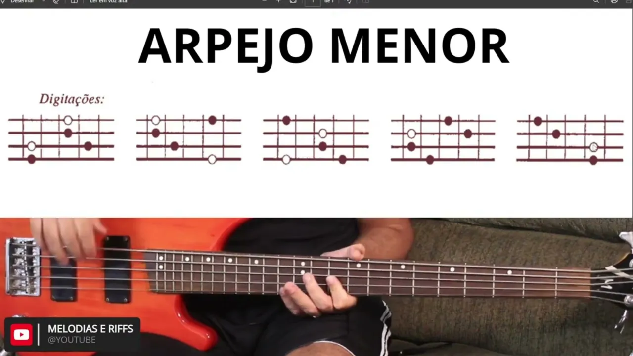 Então vamos nessa galera nessa aula vou estar ensinando os arpejos menores para vocês o desenho e o modelo dos arpejos menores são esses que tá aí na tela Lembrando que aonde tem o pontinho branco vai indicar a tônica então se eu fosse tocar os arpejos menores por exemplo em dó eu tenho que achar um dó aqui se eu for começar por aqui na terceira corda acorda um acorda dois corda três então vai ficar aqui ó [Música] Então esse aqui é um arpejo de dó menor eu precisava fazer o segundo modelo eu precisar achar o dó