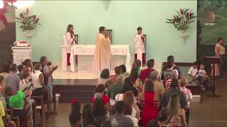 um sinal de pertença à igreja, porque Jesus nasceu para morrer por nós. Então ela vai entregar sacramental ali na mãjedoura, no menino Jesus, enquanto nós cantamos [música] representando toda a igreja. Pode entregar, Maria da Glória. Ele [música] virá, nos dará sua paz e sua luz iluminará nossas vidas. Cristo [música] Jesus, Salvador, reinará sobre nós. E assim cantaremos sua glória. Ele virá, nos dará [música] sua paz e sua luz. Iluminará nossas vidas. Cristo Jesus, Salvador, [música] sobre nós e assim cantaremos sua glória. >> Amém, Jesus. E vamos agora rezar oo Espírito [música] Santo, suplicar que esse