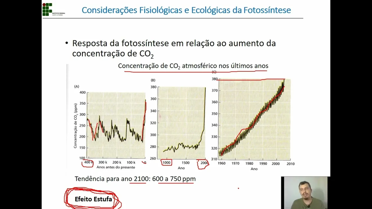 anterior em especial nas plantas C3 então quando uma situação prática nós juntarmos esses dois gráficos aqui este com este o efeito será anulado então temos essa essas duas considerações bem importantes sobre a resposta da fotossíntese em virtude desse aquecimento global né resultante da concentração dele maior né atmosfera e da temperatura que vão causar esses efeitos na fotossíntese