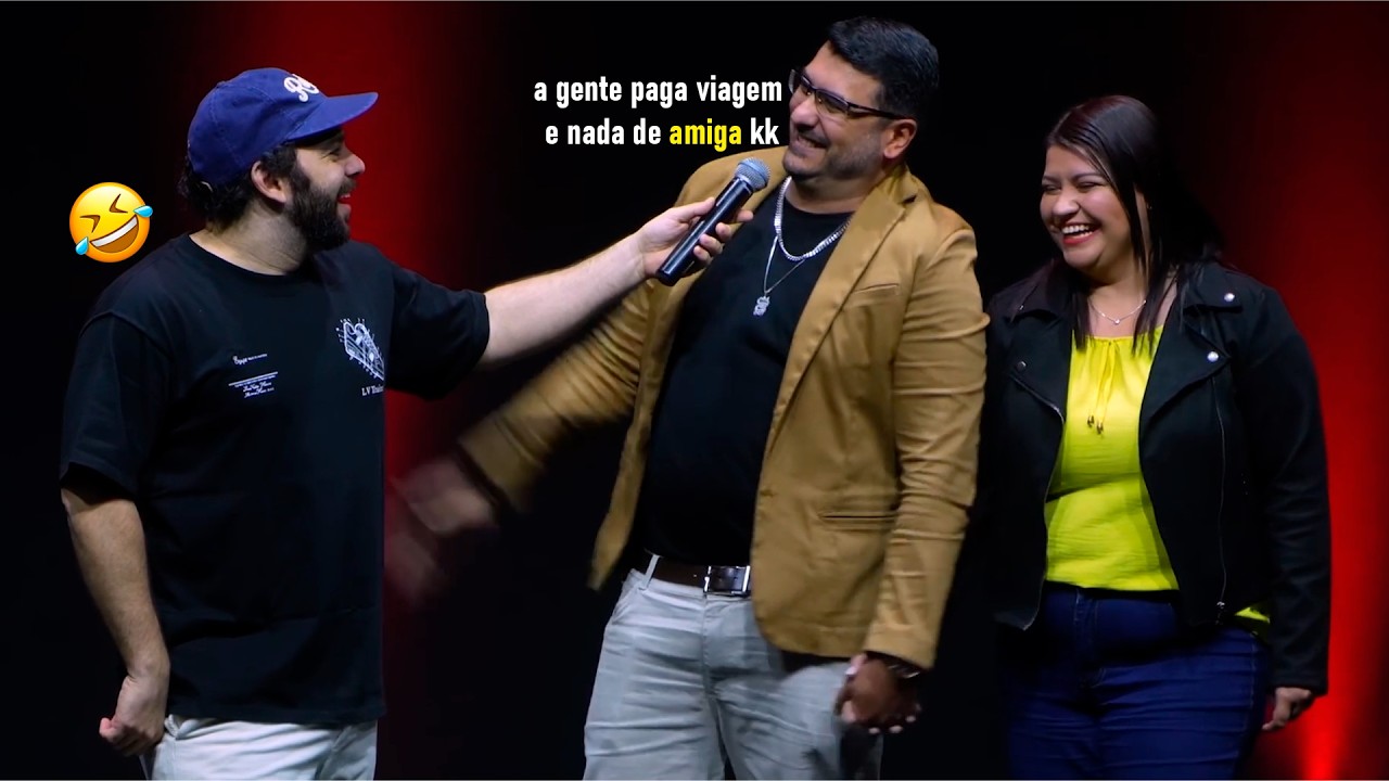 do TR tô com bico do peito duro podem descer salva de palmas tá me devendo 50 conto e um churrasco último número da noite o número dos casais dois casais no palco e essa vai ser a maior aventura que a gente vai fazer hoje pode subir dois casais pelo amor de Deus Palma vamos lá quem que quis Vir você então você fica aqui quem que quis vir primeiro levantou ela tá bom fica aqui [ __ ] esse tenizinho tá top Bom vamos lá plateia não deixa de esquecer da ideia que vocês vão fazer perguntas também