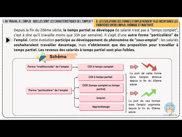 et bienvenue dans cette vidéo de résumés d'un chapitre de terminal en sciences économique et sociale aujourd'hui on va s'intéresser aux mutations du travail et de l'emploi tu es actuellement sur la première des vidéos où on va s'intéresser à l'introduction puis au grand 1 du travail à l'emploi quelles sont les caractéristiques de l'emploi dans une deuxième vidéo on s'intéressera au grand 2 quelles sont les évolutions de l'organisation du travail et dans une troisème vidéo on s'intéressera au grand 3 le travail est-il encore source d'intégration sociale dans la dernière enquête emploi qui a été publié par l'INC