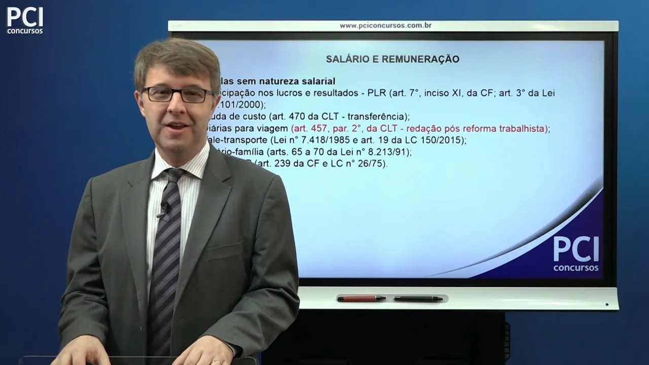 e aí o olá pci concursos tudo bem nosso curso de direito do trabalho continuidade tema salário e remuneração várias aulas sobre esse tema estamos aí já passamos da metade vamos caminhar para o nós estamos no final na parte final é estávamos falando na aula passada sobre os adicionais terminamos né de falar sobre os adicionais é hoje eu vou abrir a aula dizendo aqui um pouquinho sobre as parcelas que não tem natureza salarial onde não há maiores controvérsias acerca da natureza indenizatória além nós já falamos sobre isso né quando estudamos o artigo 457 as novidades trazidas