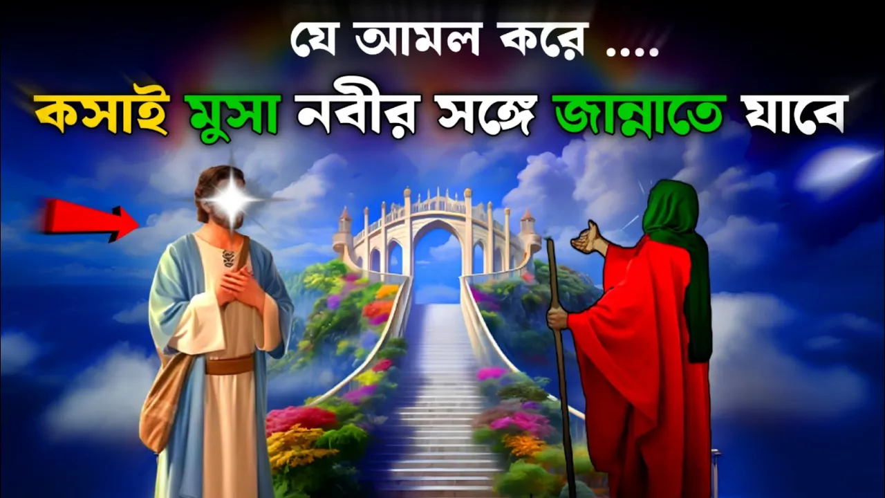 [মিউজিক] হযরত মুসা আলাইহিস সালাম একদিন আল্লাহর সাথে সাক্ষাৎ করার উদ্দেশ্যে তুর পাহাড়ের দিকে রওনা হলো তুর পাহাড়ের উপরে স্বয়ং আল্লাহ তাআলা তার গায়েবী আওয়াজের মাধ্যমে মুসা আলাইহিস সালামের সাথে কথা শুরু করল মুসা আলাইহিস সালাম বললেন হে আল্লাহ আমি জানতে চাই জান্নাতে আমার সাথে কারা থাকবে তখন আল্লাহ তাআলা বললেন হে মুসা এই বনি ইসরাইলের মধ্যে একজন কসাই বসবাস করে যে তোমার সাথে সাথেই জান্নাতে যাবে এবং ওই কসাই তোমার সঙ্গেই থাকবে তখন মুসা আলাইহিস সালাম বললেন হে আল্লাহ আমাকে তুমি একজন নবী বানিয়েছো আমার সঙ্গে নবী রাসূল আল্লাহ ওয়ালার বুজুর্গ দরবেশ জান্নাতের মধ্যে থাকার কথা আমার সঙ্গী হবার