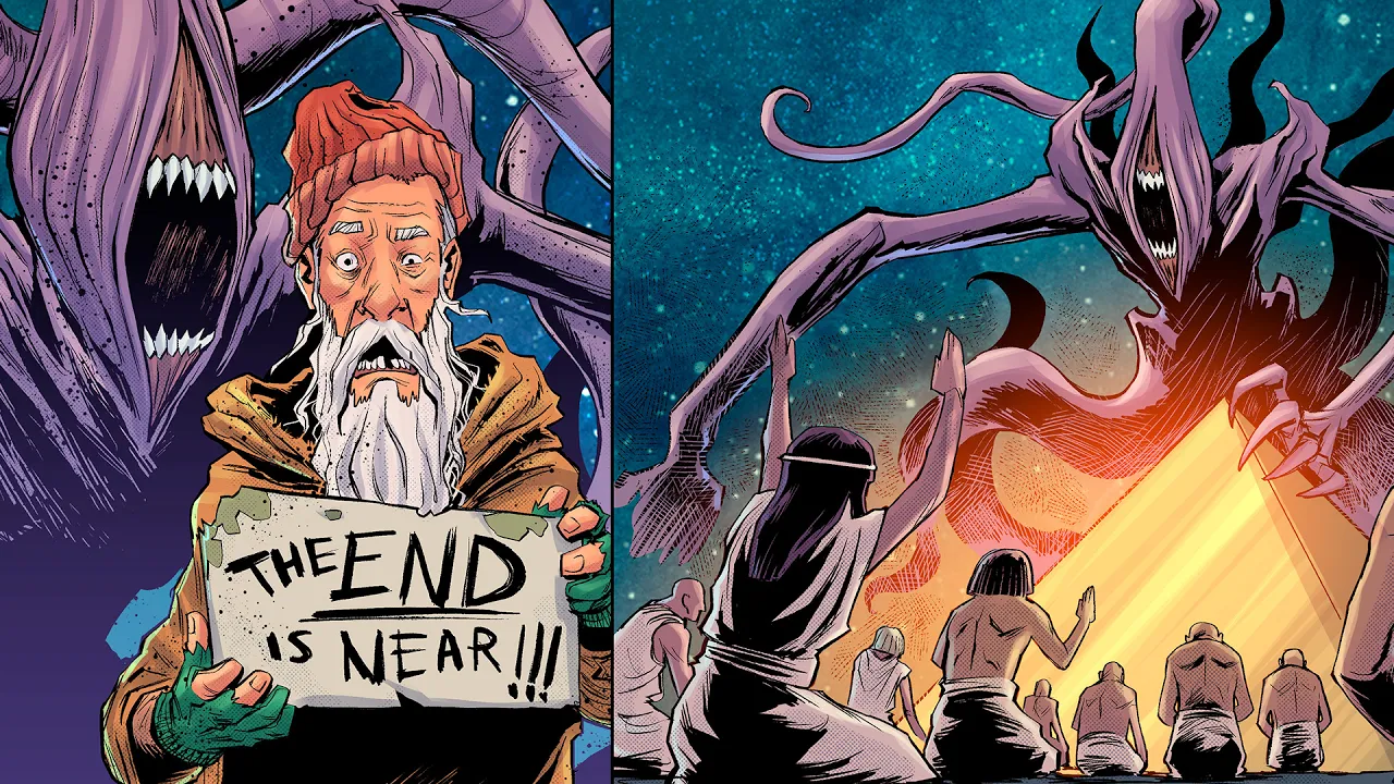 Caos que Neal artep tanto deseja a verdade mais aterradora sobre esses cultos é sua onipresença e a facilidade com que atrai novos seguidores de intelectuais e acadêmicos H desesperados e deslocados o culto oferece a cada um o que busca seja poder conhecimento ou um sentido para a existência e uma vez que se entra nessa espiral de loucura não há retorno ni alart tep é o arquiteto desse jogo cujos desígnios são tão enigmáticos quanto aterrorizantes para ele a humanidade não é nada além de um brinquedo para ser usado e descartado um passatempo em sua eternidade de
