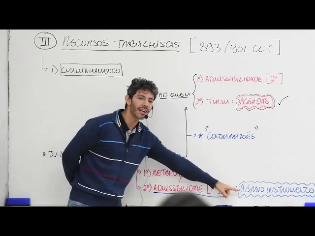 Olá bom dia a todos todas conquistamos tudo bem bom onde o pessoal vamos assistir na tela em sequência dos nossos encontros e direito processual do trabalho nós chegamos ao nosso chegamos ao terceiro tópico da nossa matéria que é o tópico de recursos não só para recapitular nas aulas passadas além da competência a gente estudou o tópico de dissídios individuais e nós vimos a Inicial vimos a situação falamos da audiência culminando com até um pouquinho de ônus de provas e depois falamos do rito sumaríssimo certo em fechamos mostrando as diferenças entre os ritos nós conhecemos é
