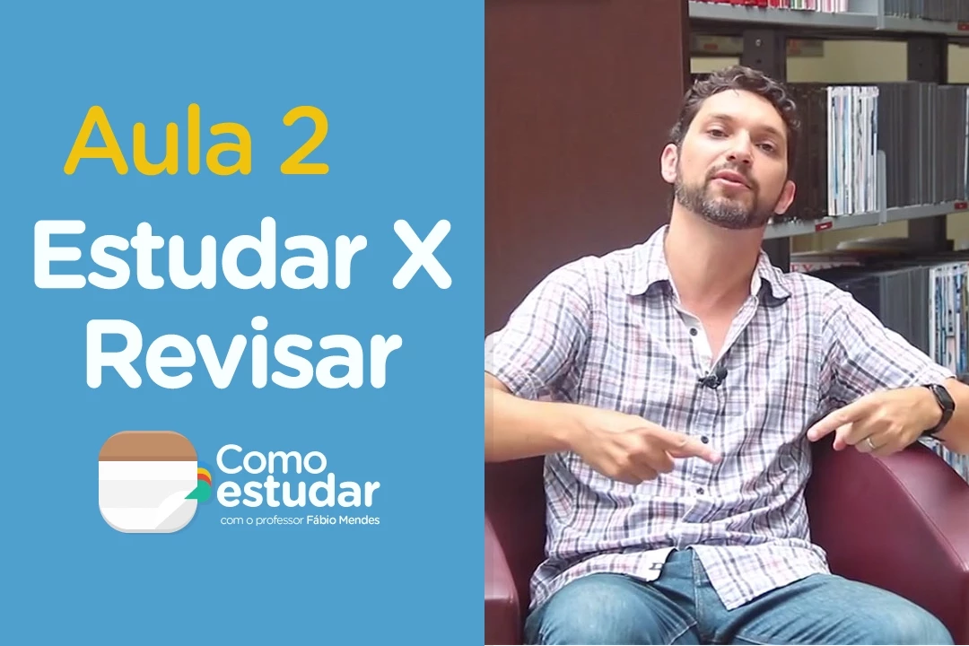 E aí gente tudo bem Aqui é o professor Fábio Mendes e agora a gente tem a nossa segunda aula o assunto é sobre a diferença entre estudar e [Música] revisar bom a primeira coisa que é preciso a gente entender para notar a diferença entre estudar e revisar é perceber que normalmente a gente usa a palavra estudar para muitas coisas a gente fala em estudar como um sinônimo assim uma coisa como aprender então a gente diz ah tô indo estudar na aula mas na verdade a gente vai pra aula para assistir alguém falando sobre um assunto