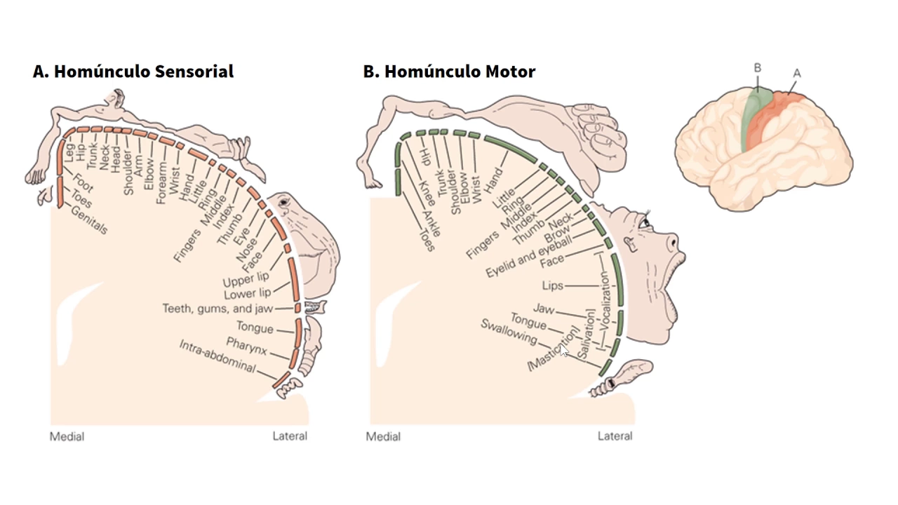bem com essa técnica penfield pode investigar o cérebro na sua Plenitude com contato e acesso direto e através de técnica de estimulação ele conseguiu determinar quais regiões e ativava que outras regiões do corpo ISO dessa forma Ele criou o conhecido homúnculo de penfield nós temos o homúnculo sensorial e o homúnculo motor ou seja essa região do córtex motor por exemplo controla a mão essa região a face essa região a língua e assim por diante tudo isso foi determinado com crânio aberto com o cbro exposto com córtex exposto e com técnicas de estimulação elétrica Ah isso