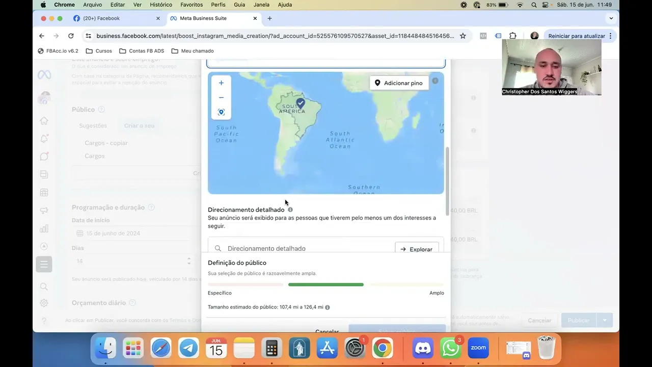para vocês tá bom tendo Vista alguns pontos aqui bem importantes então aqui embaixo Vocês já viram essas configurações já viram Esse passo a passo para turbinar mas aqui embaixo na parte de criação de público ele tá carregando ainda eu vou mostrar para vocês como que a gente cria esse público vou esperar só o Facebook resolver carregar a nossa tela lembrando eu sempre utilizo esse objetivo de mais visitas ao perfil porque essa é a melhor maneira de aumentar a nossa audiência vamos dar só um recarregar aqui na nossa página no Facebook poder mostrar a opção dos