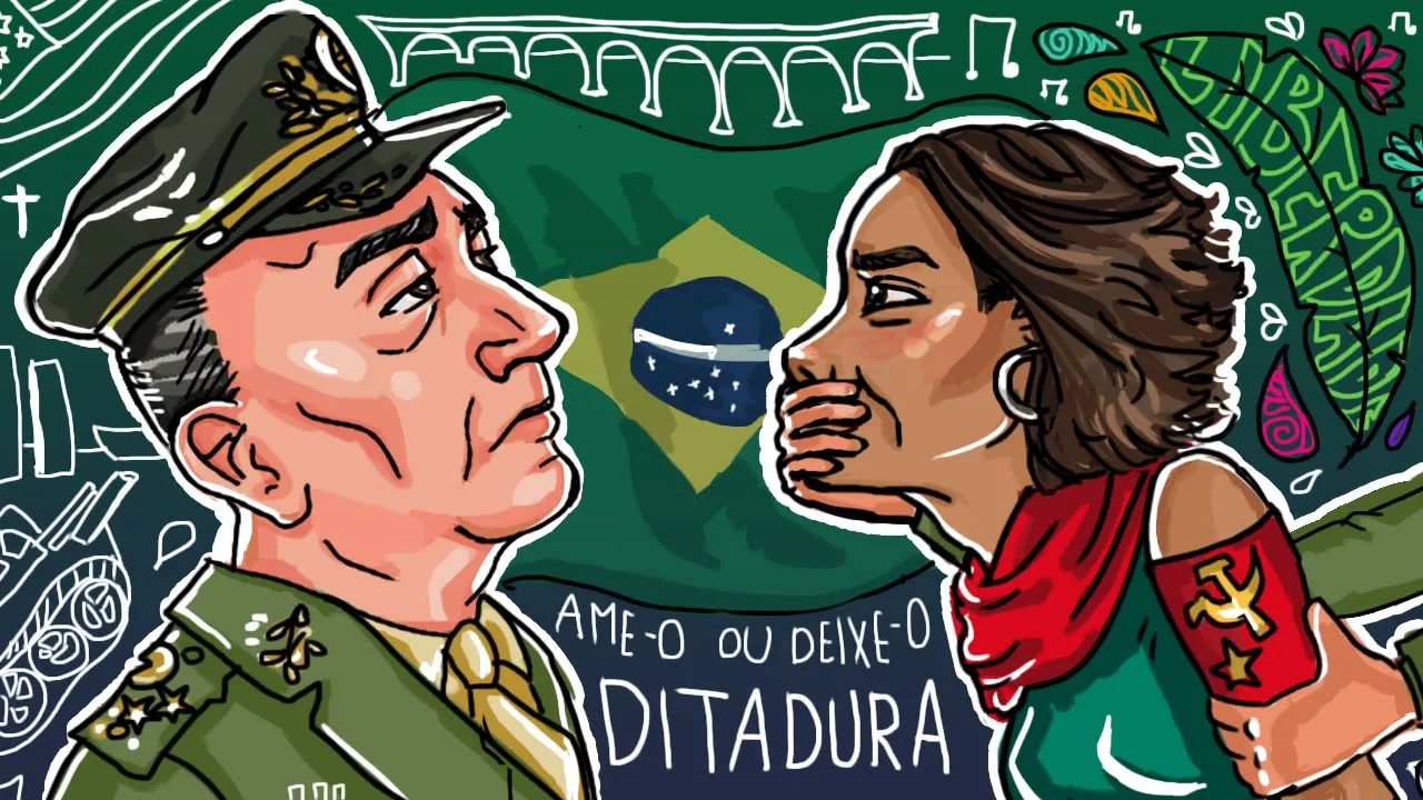 muitas pessoas que discordavam do regime eram alvo de terrorismo de estado e dentre que ficou conhecido como anos de chumbo e nesse mesmo tempo nasceu o movimento artístico musical tropicália como reação política e cultural a censura ao conservadorismo liderado por caetano veloso por quatro metros se houver to give mais simples ícone da música popular brasileira mas não tão no governo será que a ditadura foi mesmo violento assim ao mesmo tempo que estava acontecendo ditaduras muito repressivas em toda américa latina a operação condor uma aliança entre os países do cone sul tendo apoio até da cia