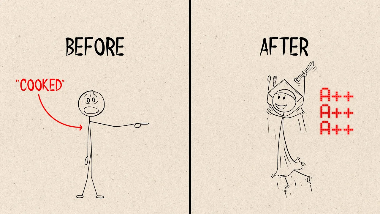 oh so you waited until the last minute genius your situation is officially cooked but lucky for you I'm about to throw you a Lifeline I can teach you how to study last minute and still Ace your exam so shut down that little voice in your head screaming panic and guilt because it's time to lock in let's turn this mess into a w right now step one ditch the useless stuff all right let's be real you don't have time to become Einstein overnight so we're going full damage control mode no fluff just straight up survival tactics