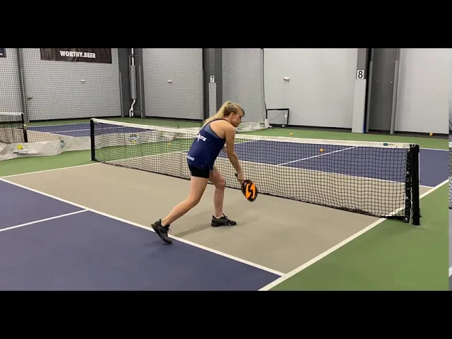 it i'll demonstrate that now okay so just as a reminder anytime you want to hit a ball out of the air you can do so but you must remain behind the kitchen line anytime you'd like to go in the kitchen to hit a ball it's okay but that ball must bounce before you hit it and if you do hit a ball out of the air not step in the kitchen as a follow-through you must hit that shot and regain your balance before you're able to step in that kitchen for that next bouncing ball okay i'm