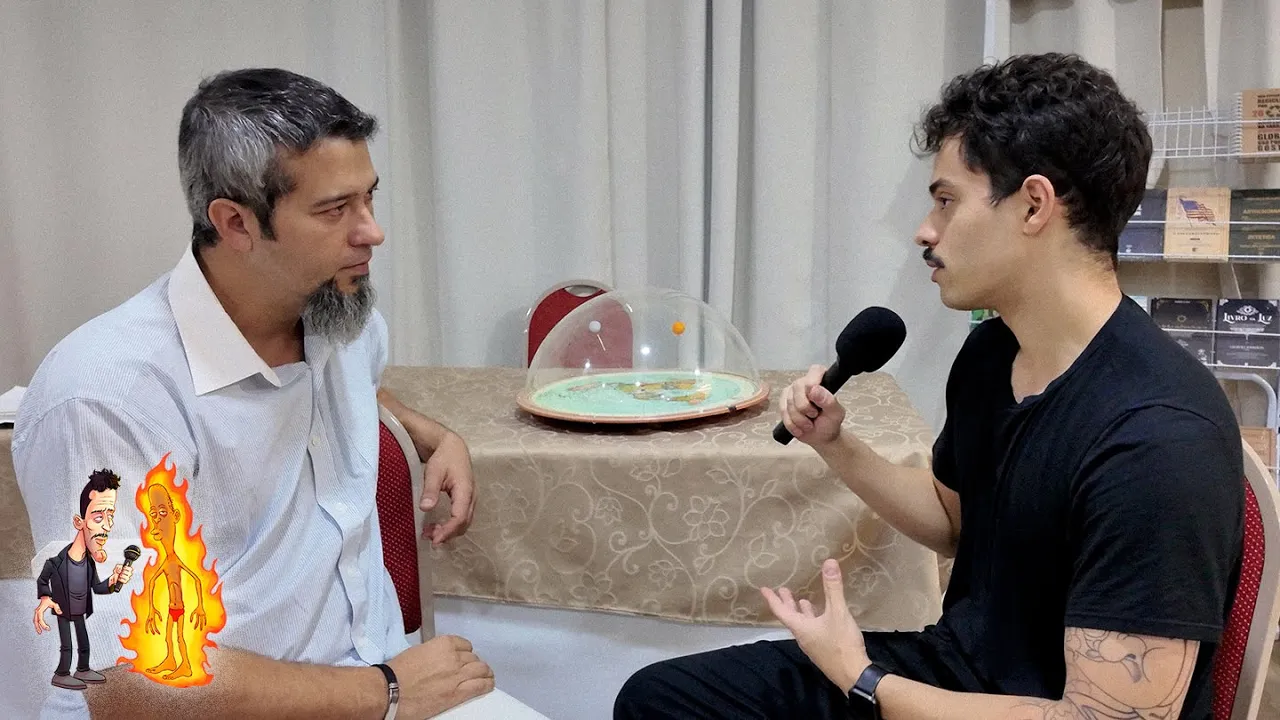 entendeu É isso que eu fico eu sei se tem um diploma lá e não quer nem passar vergonha né na frente de todo mundo então eles manda os alunos entendeu é isso que tem acontecido infelizmente pro debate isso é ruim [Aplausos] [Música] né eu queria saber a sua opinião sobre isso a opinião do senhor sobre isso amigo não tenho tempo desculpa Ah tudo bem O que que são as estrelas essas coisas dentro dessa ideia da Terra plana então segundo as escrituras né é relato que lua e sol são luminares um para governar a noite e