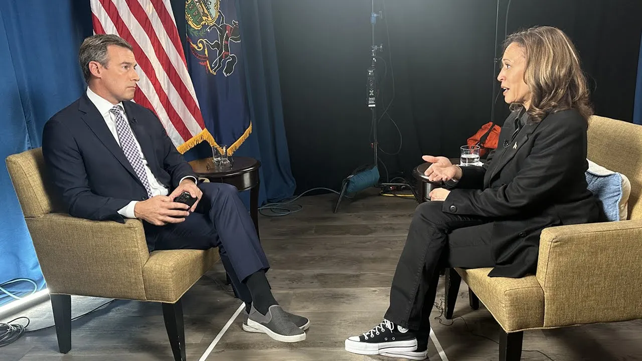 all good okay okay wonderful good awesome Madam vice president pleasure to meet you thanks for your time today our audience appreciate your time as of course as you know we're sitting here in a state and arguably in front of an audience that 54 days from now could decide the outcome of this presidential election you hear it more than I do people want to know more about you and about your specific plans at the debate the other night you talked about creating an opportunity economy wonder if we can drill down on that a little bit when
